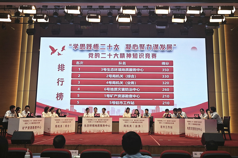 此次竞赛,内容主要涵盖党的二十大报告、《中国共产党章程》《习近平著作选读》第一、二卷)、《习近平新时代中国特色社会主义思想专题摘编》、习近平总书记关于地质工作重要论述。生态环境中心高度重视、精心组织,广大员工以此为契机,掀起了党的二十大精神学习热潮,很好地达到以赛促学、以学促行的目的。