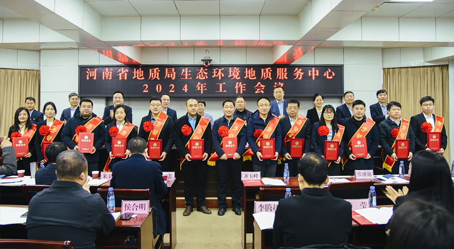 会议传达学习了2024年河南省地质系统工作会议精神,对中心2023年度各类先进集体和个人进行了表彰。