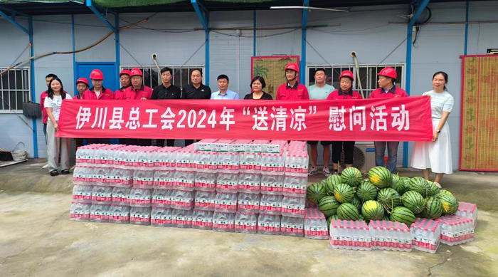 炎炎夏日送清凉,丝丝真情入心田。6月19日,伊川县总工会副主席赵幽妹、安俊红,伊川县总工会常委、县政府办公室秘书科科长文建学一行到生态环境中心“伊川县产业集聚区污水处理厂尾水提升湿地工程”项目一线,看望慰问高温天气坚守岗位的项目组成员,并为大家送去慰问品。